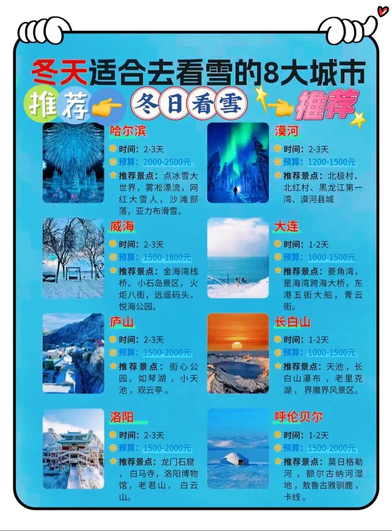 (2)玉龍雪山:麗江附近的玉龍雪山是著名的旅游景點,山上有積雪,可以滑雪、賞雪,冬季的玉龍雪山更是美不勝收,玉龍雪山景區內的藍月谷等景點也值得一游,還可以參觀東巴文化村等納西文化遺址,了解納西族的歷史和文化,玉龍雪山索道是欣賞雪山美景的最佳方式之一,乘坐索道,可以俯瞰整個麗江壩子和遠處的雪山美景,索道口還有觀景臺供游客欣賞美景和拍照留念,在雪山腳下還可以品嘗納西族特色美食如酥油茶、烤全羊等,麗江周邊的瀘沽湖也是一處值得一游的景點,瀘沽湖以其美麗的湖光山色和獨特的摩梭文化而聞名于世,游客可以在這里欣賞湖光山色、體驗摩梭人的走婚文化等,麗江古城內的四方街是游客的必游之地之一,這里是麗江的繁華地段之一,匯聚了各種特色小吃和手工藝品店等,游客可以在這里品嘗當地美食和購買紀念品等,古城內還有許多古老的納西建筑和文化遺產值得一看,在麗江還可以參加當地的民俗活動和文化表演如納西古樂表演等進一步了解納西文化,此外還可以參加徒步旅行團探索周邊的虎跳峽和香格里拉等景點,總之麗江是一個充滿歷史文化和自然風光的美麗城市是冬季旅游的好去處之一,在這里可以感受到濃厚的文化氛圍和自然美景讓人流連忘返,除了以上兩個地方外國內還有許多其他適合冬季旅游的地方如哈爾濱的雪雕冰雪大世界等也是值得一游的地方可以根據個人喜好和時間安排進行選擇旅行計劃享受美好的冬季旅游體驗吧!三、總結本文介紹了幾個國內適合冬季旅游的地方包括海南三亞和云南麗江等這些旅游勝地都擁有獨特的自然風光和豐富的文化遺產為游客提供了美好的旅游體驗在寒冷的冬季里逃離寒冷的天氣尋找溫暖的度假勝地成為了很多人的選擇希望本文能夠幫助大家找到適合自己的旅游目的地度過一個美好的冬天!