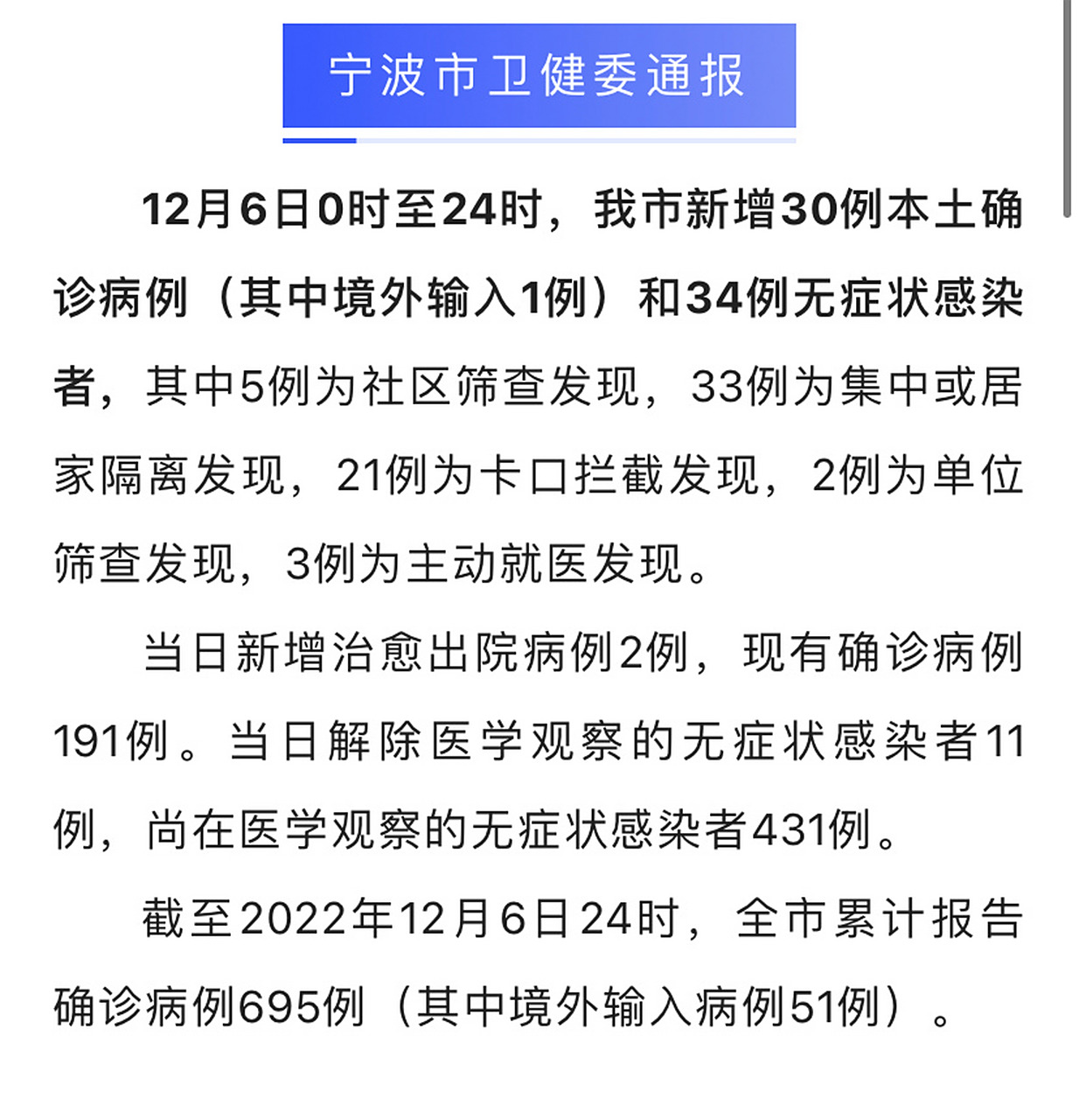截至最新數據,寧波市累計報告確診病例數量有所上升,不過,在各級政府及醫療部門的積極應對下,大部分確診病例已經治愈出院,且無重癥及危重癥病例,寧波市疫情防控形勢總體可控。