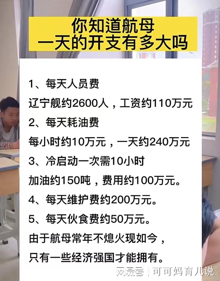 綜合以上因素,航母一天的消耗涉及多個方面,難以給出一個具體的數字,不過,可以大致估算,一艘中等規模的常規動力航母,一天的消耗可能在數十萬元人民幣以上,而大型核動力航母的運營成本則更高。