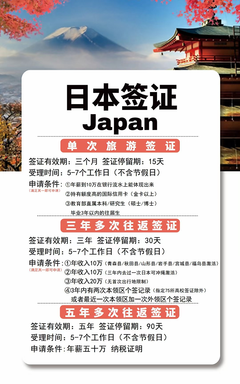 5、關注動態:由于政策可能會有所變動,建議在申請簽證前關注最新的日本旅游簽證政策。