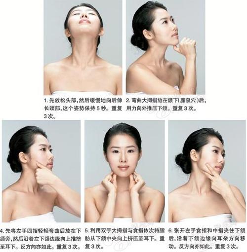 (3)按摩:通過按摩可以促進面部血液循環,加速脂肪燃燒,達到去除雙下巴的目的,按摩時可使用一些緊致肌膚的護膚品,提高效果。