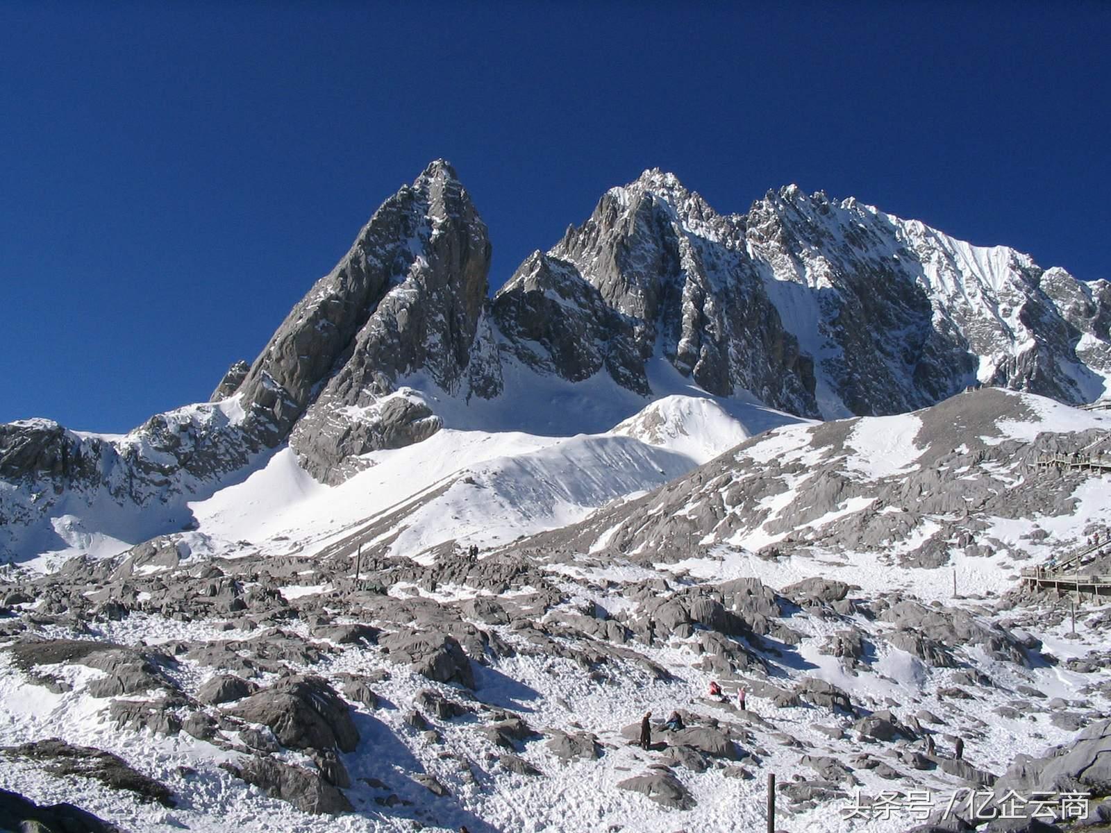 2、冰川公園:玉龍雪山擁有世界上最大的高山冰川公園,這里的冰川景觀奇特壯觀,是冰川旅游的絕佳之地,游客可以在這里欣賞到各種冰川地貌,感受到冰川的神奇魅力。