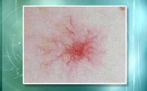 1、紅點形態:肝癌身上出現的紅點通常呈現蜘蛛狀,中心部位為紅色斑點,周圍呈放射狀血絲。